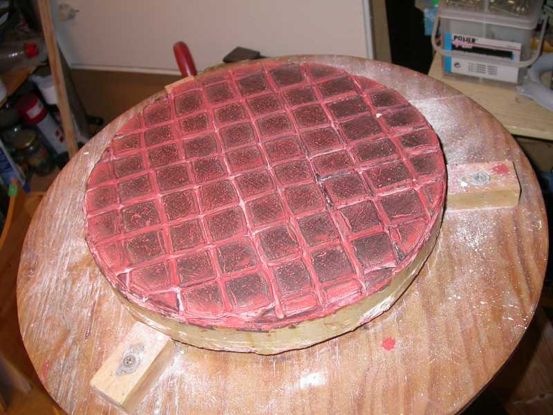 Jeg har længe gået og tænkt over en smartere måde at lave en polerlap på. Den traditionelle metode er at hælde et lag beg ud på et passende tykt underlag og dernæst lægge det opvarmede spejl på for at få den rigtige facon på begen. Kanalerne bliver så efterfølgende smeltet med en loddekolbe, under røg og damp. Dette giver en udemærket polerlap, dog lurer jeg på om kanterne af kvadraterne bliver hårdere efter at have været tæt på en meget varm loddekolbe. Resultatet bliver som dette: