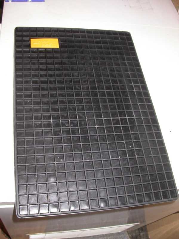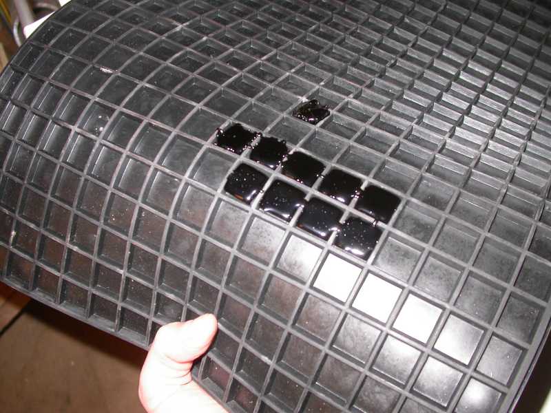 Og så til det spændende. Under et indkøb i den lokale NETTO, faldt jeg over en bilmåtte til en formue af 40 kr. Straks kom ATM'eren op i mig, den måtte kunne bruges til støbning af beg-kvadrater.