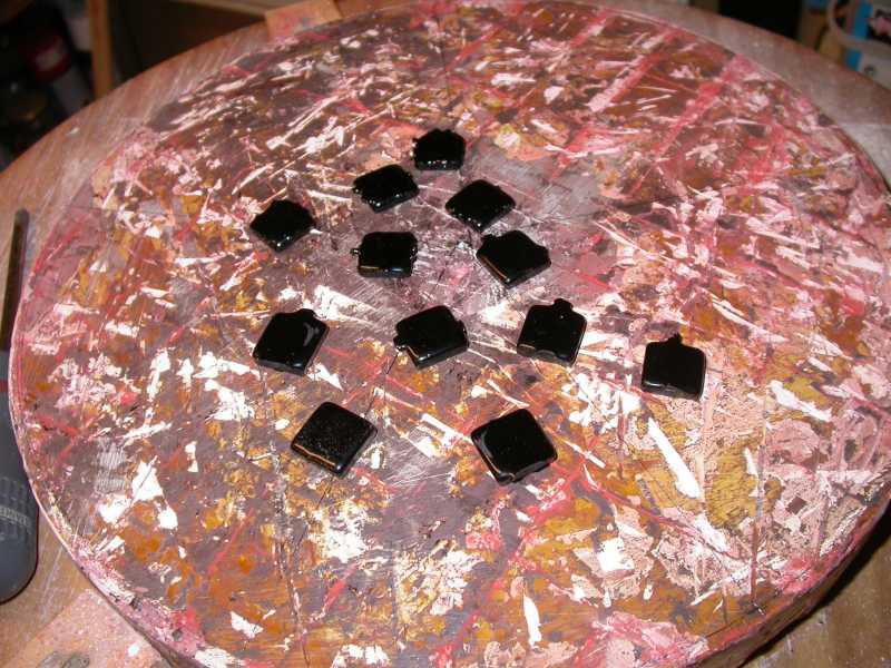 Nu forestår der bare arbejdet med at støbe dem fast på gipsunderlaget, dette foregår ved at varme dem let på den ene side over et stearinlys, hvorefter de klæber fast til gipsunderlaget.